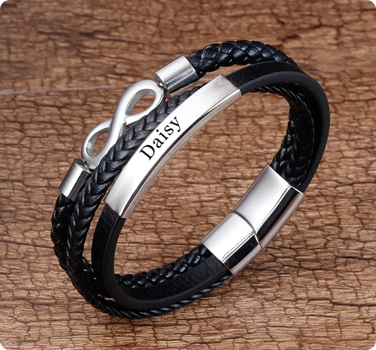 Leather Stainless Steel Mens Personalised Engraved Bracelet-Fathers Day Gift- Dad Daddy Boyfriend Father Girlfriend, Christmas gift,