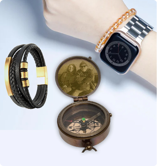 Compasses symbolize guidance and progress — ideal for leadership awards. Bracelets can carry meaningful initials or dates, while watch bands can represent shared goals and team identity.